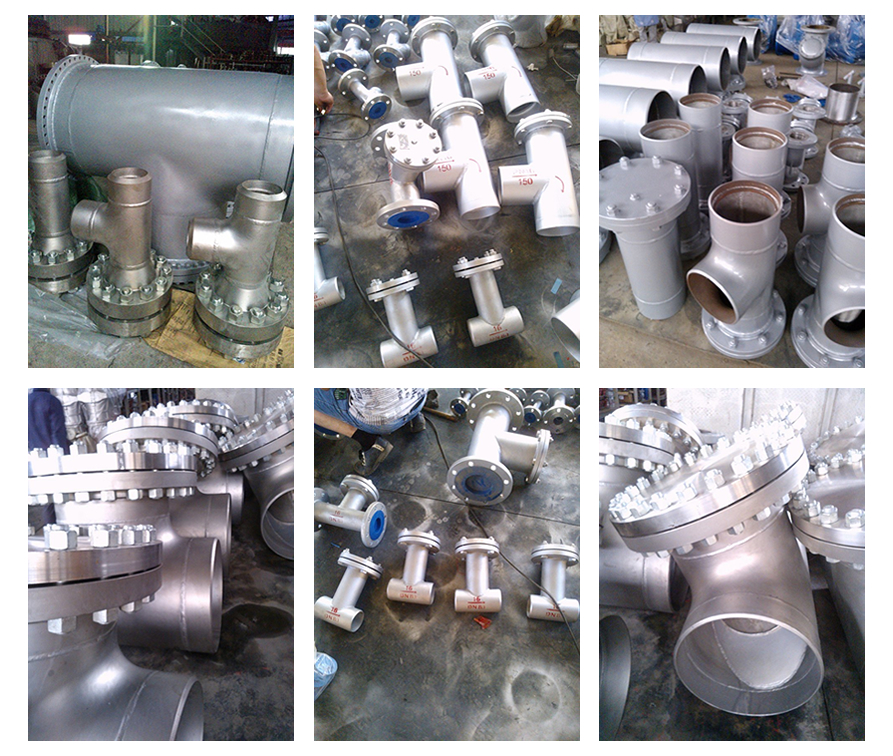 T型過濾器整體采用無縫鋼鋼焊制成型(也可采用三通進行焊制),其長度、直徑、材質(zhì)及壓力均可按客戶要求進行定做。T型過濾器進出口布位方向多變,滿足多種工況,并可進根據(jù)客戶要求進行無損檢測(RT射線、UT超聲波、磁粉MT)。