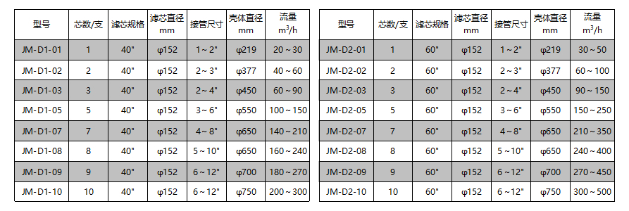 JM-D系列精密過濾器采用大流量濾芯,單支濾芯處理能在50m3/h,高過濾精度1um/99.9%wt,單只濾芯納污量約8~10kg(視雜質(zhì)特性而定)。